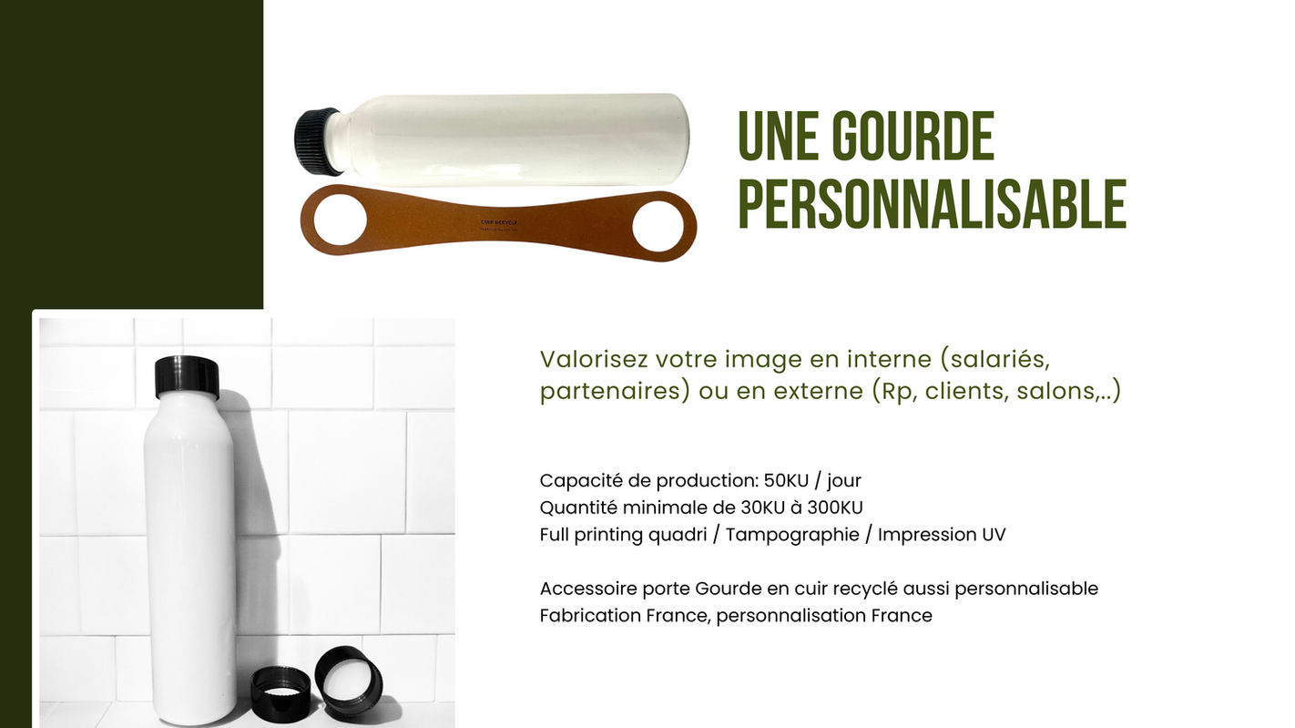 Nos Gourdes bouteilles sont fabriquées en circuit court, en France, avec des matériaux recyclés.
